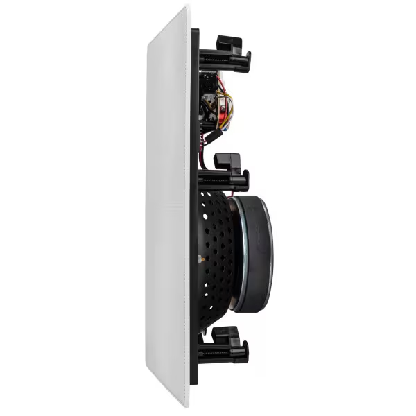 Dayton Audio ME825W 8" Micro Edge 2-Way In-Wall Speaker Pair Dayton Audio’s Micro-Edge™ speakers were created to combine the high-quality sonic performance of a premium free-standing speaker with sleek, contemporary in-wall styling, for a thoroughly modern take on the in-wall speaker. The ME825W model is the largest in the line, and features an 8" diameter woofer that handles high power for maximum sonic punch without sacrificing clarity. The low-profile perforated grill with ultra-slim Micro-Edge™ frame almost disappears into the wall entirely, and is easily paintable to match its surroundings. The 8" woofer features an oversized magnet assembly and a woven black Kevlar cone that provides excellent transient ‘snap’ and crisp vocal clarity along with deep, high-impact bass, and the 1" silk-dome tweeter delivers rich detail that never becomes harsh, even at high volumes. The pivoting tweeter mount lets you target the best treble performance directly at the listening position, and the three-position room integration switch lets you decrease treble output if desired, for the best balance with your room’s natural acoustics. All Dayton Audio Micro-Edge™ (ME-series) speakers are timbre-matched for a seamless and consistent home theater experience when used together. For horizontal installation (e.g. center channel), model ME525MTM is recommended. Specifications: • Power handling: 80 watts RMS/160 watts max • Impedance: 8 ohms • Frequency response: 40-20,000 Hz • Sensitivity: 88 dB 1W/1m (+/- 3 dB) • Dimensions: 14-1/4" H x 10-1/4" W x 3-7/8" D • Cutout size: 12-7/8" H x 8-3/4" W • Sold in pairs. |
